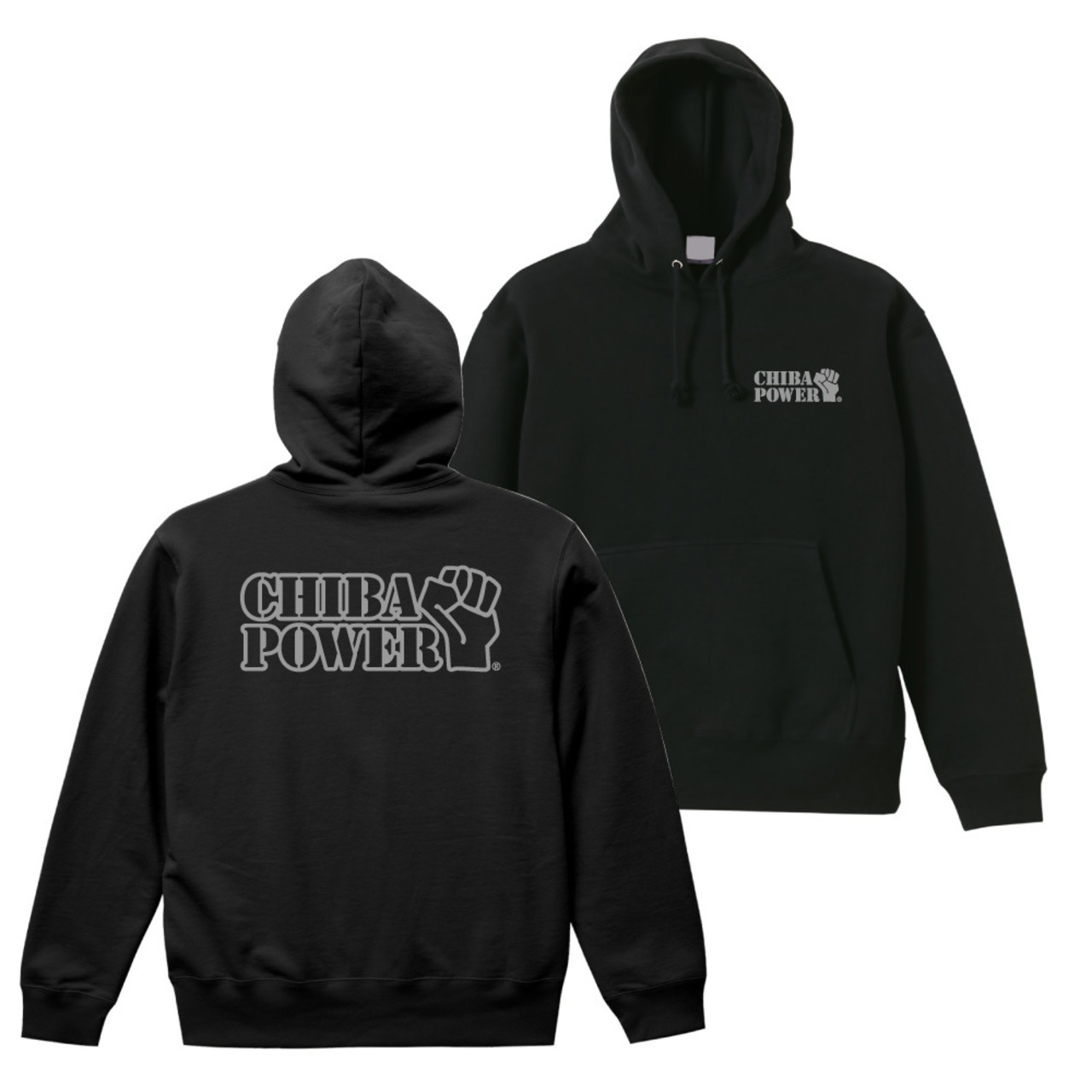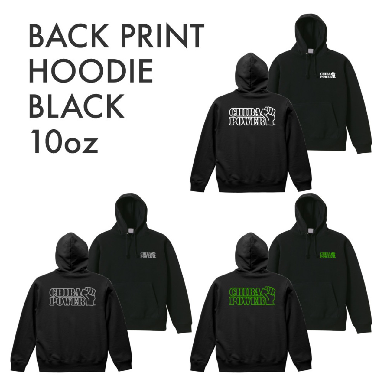 BACK PRINT HOODIE BLACK 10oz